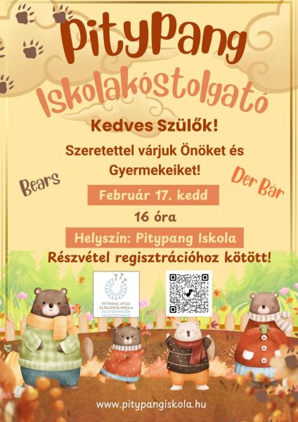 Tisztelt Szülők! Ezúton szeretnénk tájékoztatni Önöket, hogy soron következő iskolakóstolgató rendezvényünket 2026. február 17-én